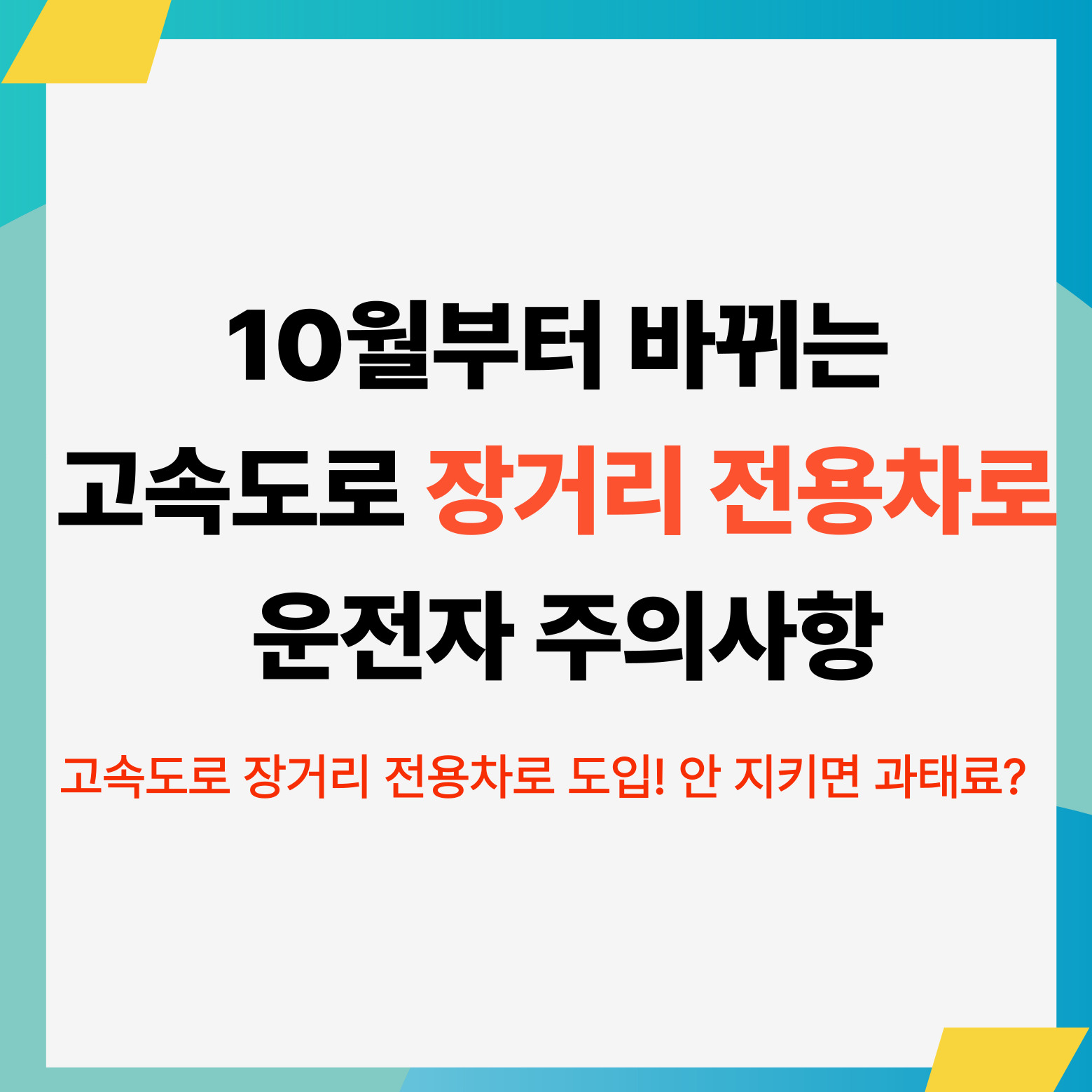 10월 이후, 고속도로 위에서 새로운 제도에 당황하지 않도록, 지금부터 미리 알아두는 것이 가장 좋은 준비입니다.